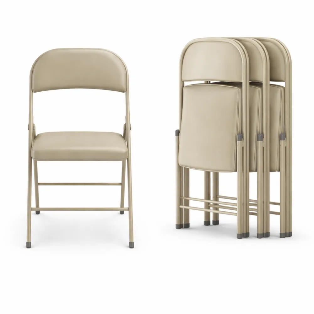 Chaise Pliante Extérieure Confortable avec Coussin Cuir, Ensemble de 4 pour Jardin et Camping